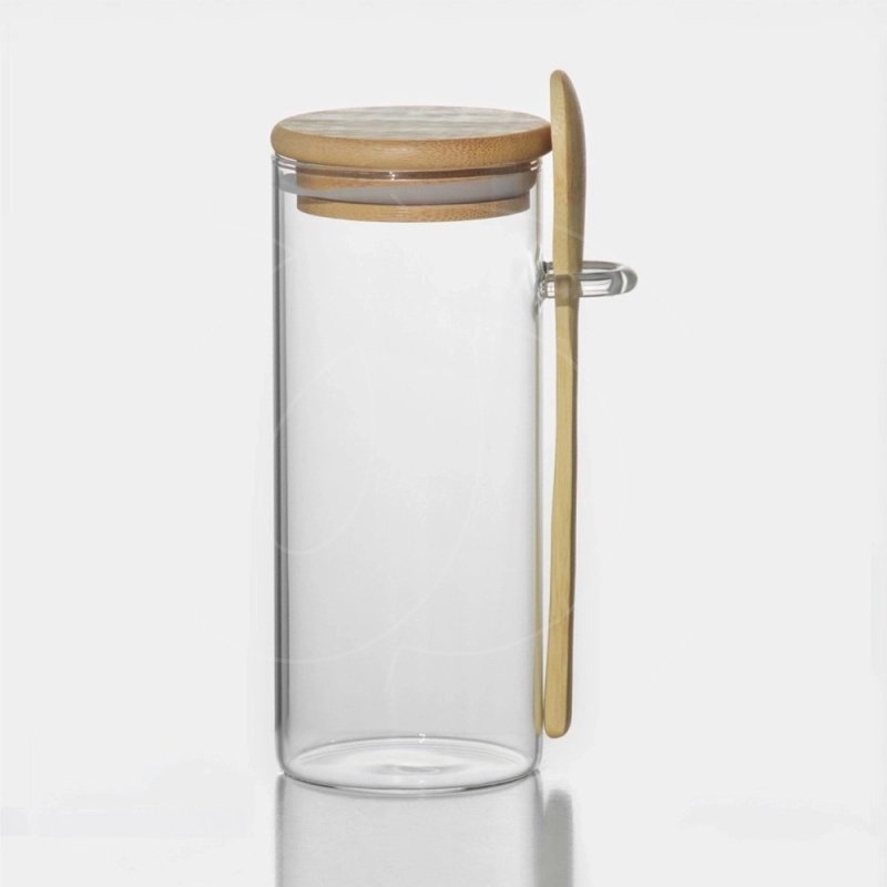 Доставка Банка стеклянная с бамбуковой крышкой и ложкой 420 мл из магазина в вашем городе:
