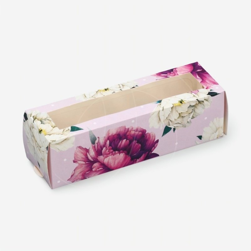 Доставка Коробка для макарон с окном "Пионы" 18х5,5х5,5 см из магазина в вашем городе: