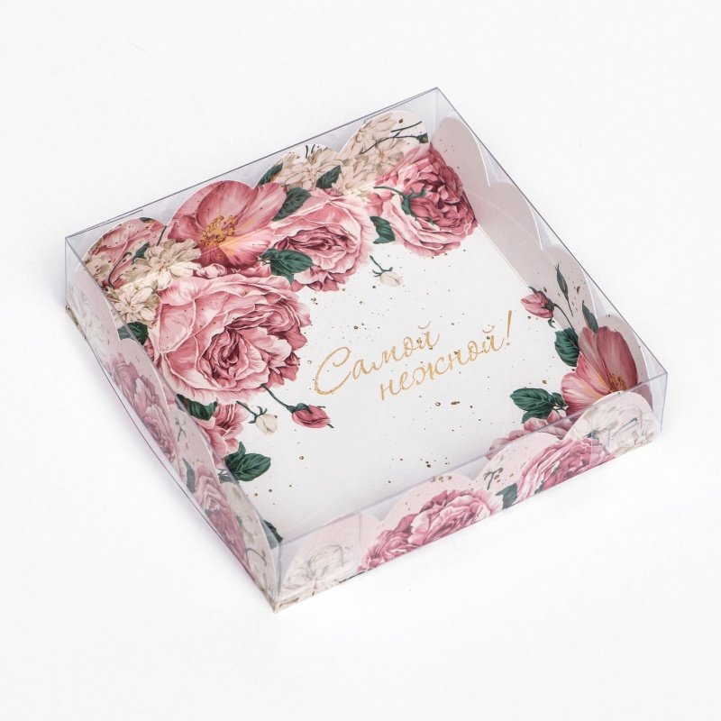 Доставка Коробка для сладостей с прозрачной крышкой "Самая нежная" 12х12х3 см из магазина в вашем городе:
