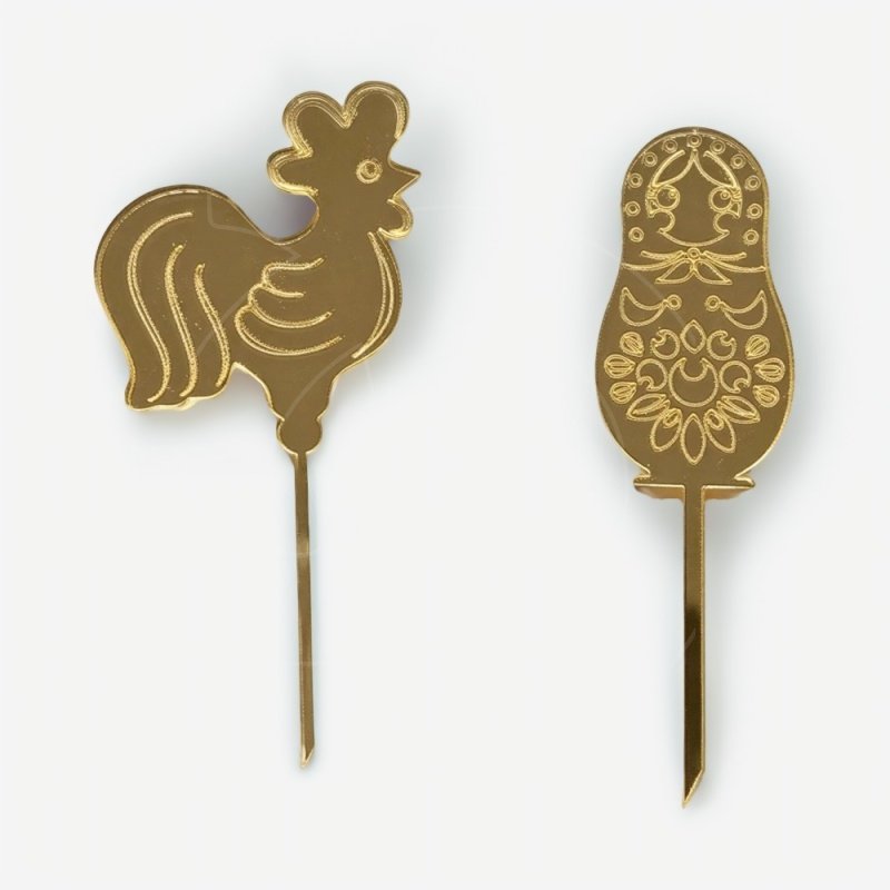 Доставка Набор топперов декоративных акриловых "Петушок и матрёшка" Золото 4х9 см 2 шт из магазина в вашем городе: