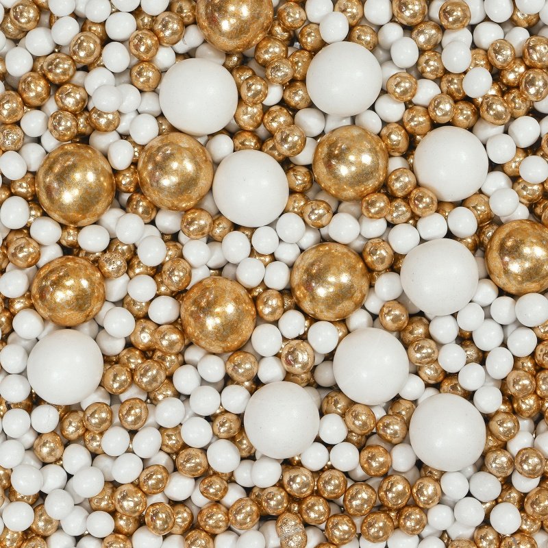 Доставка Посыпка кондитерская MIXIE "Диско-шарики белые с золотом" 45 г из магазина в вашем городе: