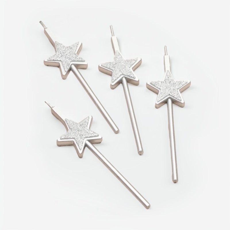 Свечи декоративные "Звёзды блестящие серебряные" 12,5 см 4 шт