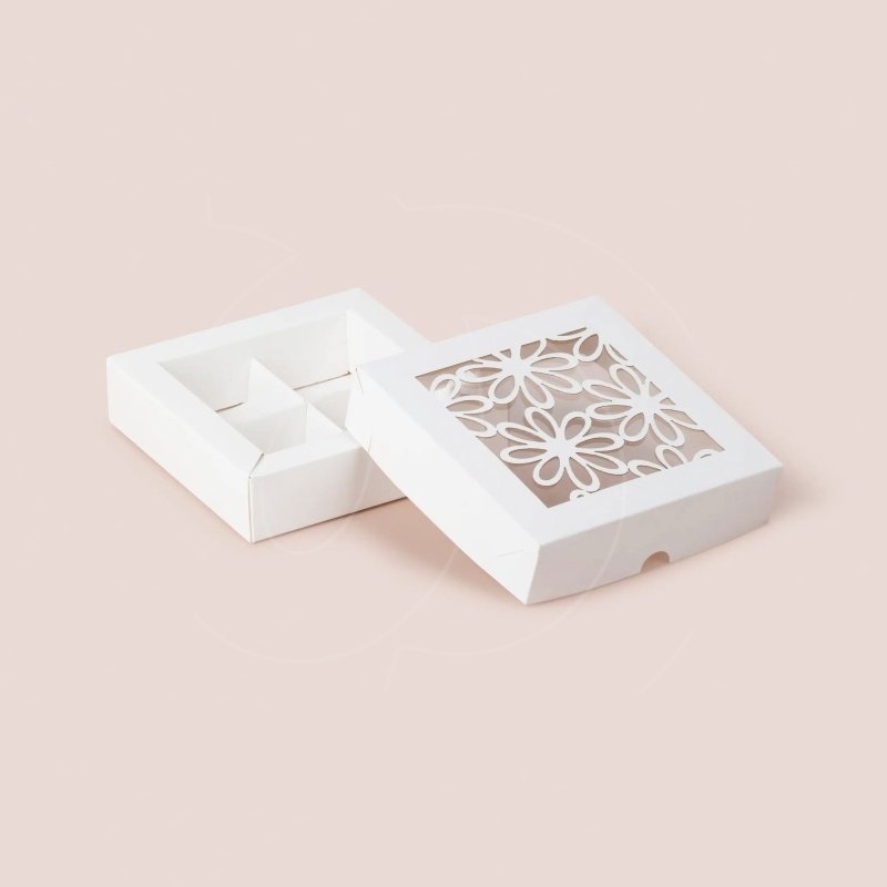 Доставка Коробка на 4 конфеты с окном "Ромашка" белая из магазина в вашем городе: