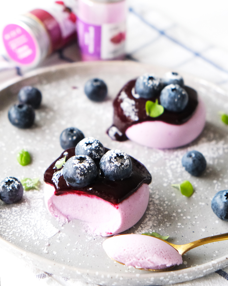 Фиолетовая Панна Котта с пудрой батата и черничным соусом