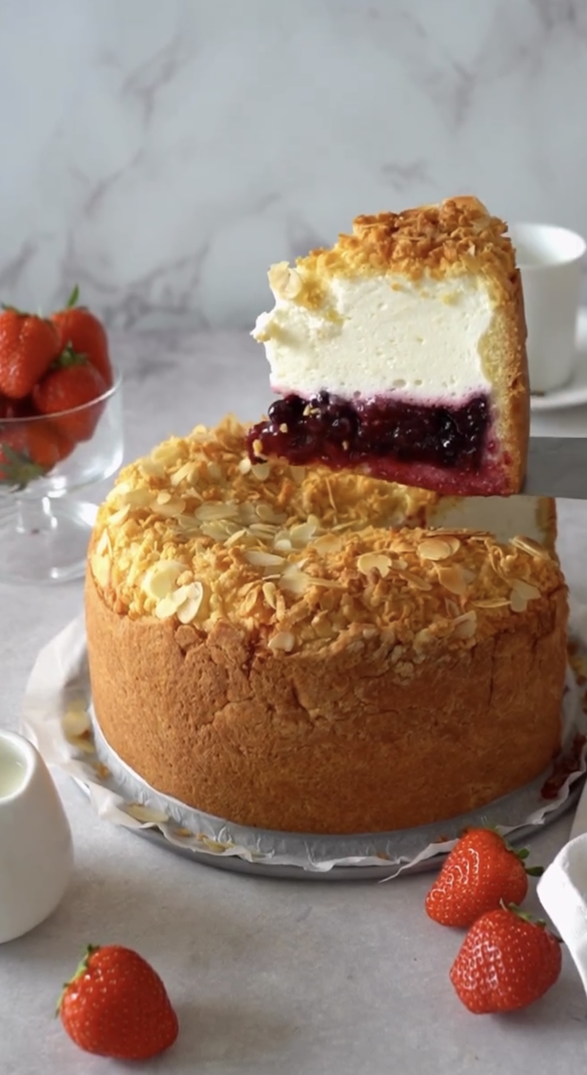 Ягодный пирог с суфле готов! Скорее собирайте всю семью на чаепитие — уверены, восторженные комплименты вам обеспечены!